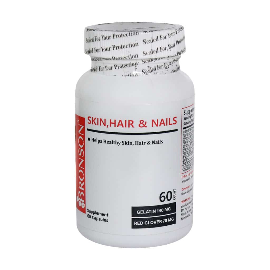 ترکیبات کپسول هیر اسکین اند نیلز برونسون سنتز اسید رتینوئیک در فولیکول مو را تنظیم می‌کند. همچنین جریان خون را در پوست سر بهبود می بخشد و باعث تحریک رشد مو می‌شود. این مکمل به طور قابل ملاحظه ای برای محافظت از بدن در برابر عناصر طبیعت ساخته شده است. این مکمل تقویت کننده پوست و مو به صورت علمی برای محافظت پوست در برابر اشعه ماوراء بنفش، کاهش چین و چروک و افزایش تراکم مو و بهبود شکنندگی ناخن ها ساخته شده است. بیوتین یک ویتامین محلول در آب است و به عنوان ویتامین B7 شناخته می شود. بیوتین عضوی از خانواده ویتامین های گروه B است. این ویتامین تنظیم کننده گلوکز است، همچنین در بهبود ناخن های شکننده و سندرم موهای غیر قابل شانه زدن نقش دارد. شاخه های برگ دار بوته هورستیل برای داروهای مختلف استفاده می‌شود، که باعث سلامت پوست، درمان ناخن های شکننده ، ترک خوردگی پا و درمان خارش پوست سر می‌شود. هورستیل شامل سطح بالایی از سیلیس است که به تقویت ناخن و مو کمک می‌کند. ال - سیستین یک آمینو اسید پروتئینی گوگرد دار است که با توجه به نقشی که در رشد عضلات دارد شناخته شده است. اسید آمینه‌های موجود در ال- سیستئین موجب تحریک رشد مو، محافظت از استخوان و بهبود گردش خون می‌شود.