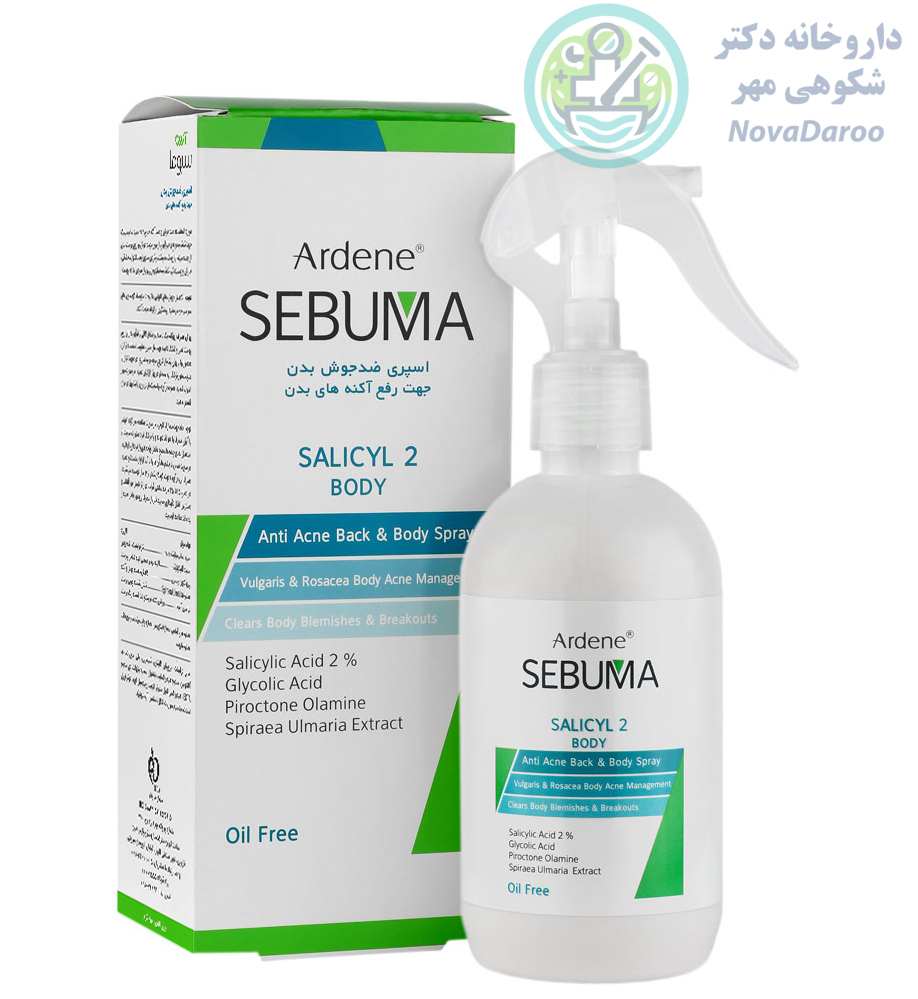 اسپری ضد جوش بدن سبوما، محصولی منحصر به فرد از لاین سبوما برند آردن است و توسط شرکت پارس حیان عرضه گردیده است. اسپری ضد جوش بدن سبوما، قابلیت تنظیم ترشحات چربی پوست بدن را داشته و همچنین از رشد و تکثیر باکتری های مولد آکنه ممانعت می کند. این محصول علاوه بر کنترل جوش و آکنه، با خواص ضد التهابی خود، قرمزی و تحریکات ناشی از جوش را التیام بخشیده و بعد از مصرف آن، احساس خشکی، خارش و چسبندگی روی پوست ایجاد نمی شود.