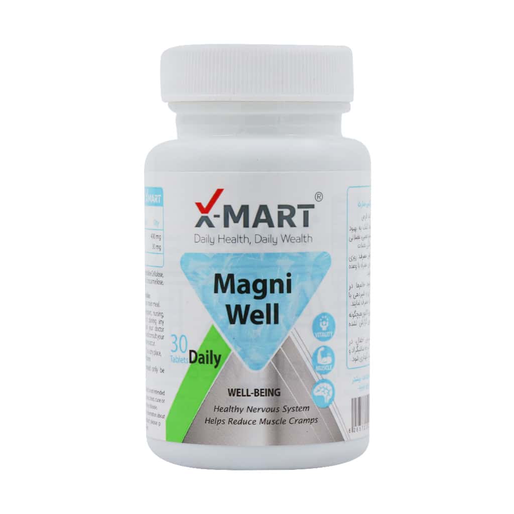 قرص مگنی ول ایکس مارت یک مکمل غذایی حاوی 400 میلی گرم منیزیم و 30 میلی گرم ویتامین B6 در هر قرص است. این مکمل به بهبود عملکرد سیستم عصبی و عضلانی کمک می‌کند و در کاهش گرفتگی عضلات، خستگی ناشی از فعالیت‌های بدنی و بهبود کیفیت خواب موثر است. از دیگر مزایای این مکمل می‌توان به سلامت استخوان‌ها، سلامت قلب و عروق، افزایش سطح انرژی، کاهش احساس خستگی، بهبود خلق و خو، تسکین علائم سندروم پیش از قاعدگی، کاهش شدت و تعداد حملات میگرن و بهبود خواب اشاره نمود.